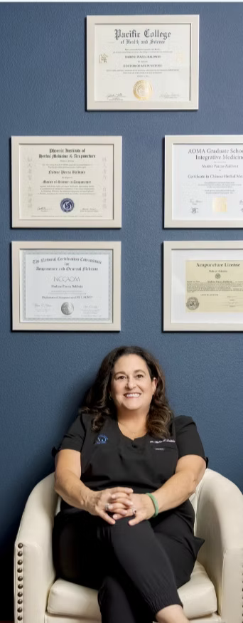 Dr. Nadine P. Baldwin is a board-certified acupuncturist who earned her Doctor of Acupuncture (DAc) from the Pacific College of Health and Science in San Diego, CA. In addition to her doctorate, she is Board Certified in Neuropathy (BCN) and holds advanced certification in Chinese Herbal Medicine (CCHM).